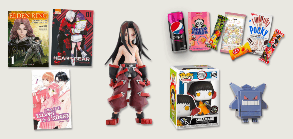 Nous essayons de proposer de nouveau encas japonais chaque mois. Vous y retrouverez des kitkat, fanta, pepsi asiatique, bonbon, umaibo, ramen et pleins d’autres surprises