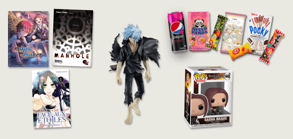 Vous retrouverez chaque mois de nouvelle figurine et goodies issues de vos shonen et seinen préférés tels que One pièce, Dragon Ball, Bleach, Naruto, Boruto, Chainsawman, Jujutsu kaisen, Demon Slayer